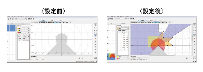 さらに、実際にリアルタイムで人や物が動く様子を画面で確認しながら、検出エリアをご調整いただけます。