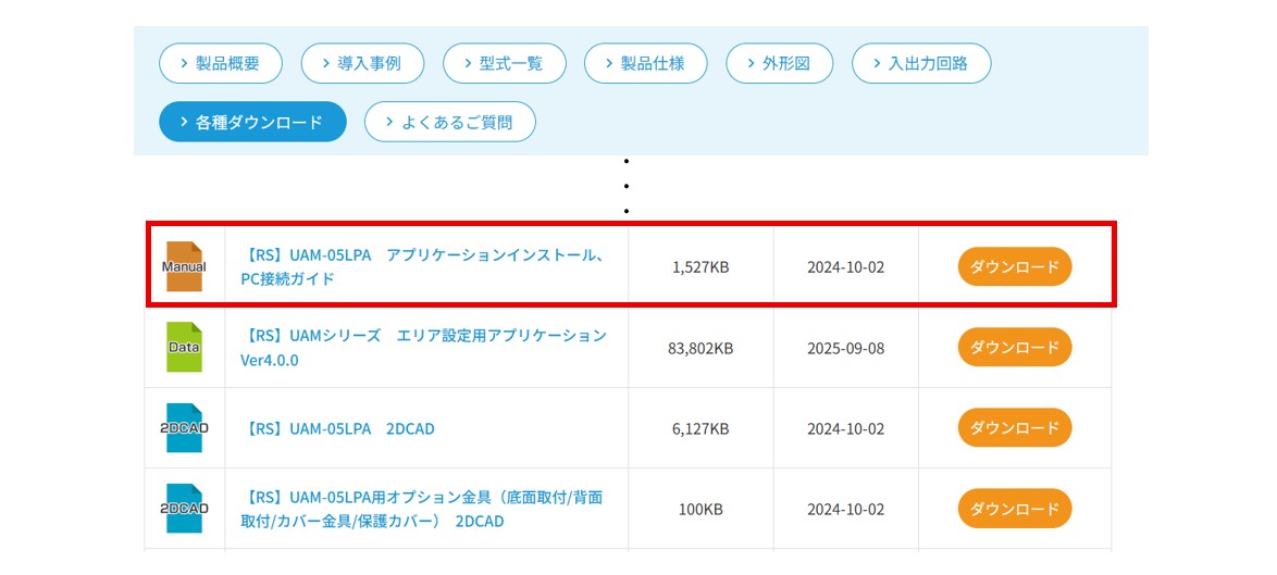 こちらのガイドも、“UAM-05LPA-T301”製品ページの各種ダウンロード項目よりダウンロードが可能です。