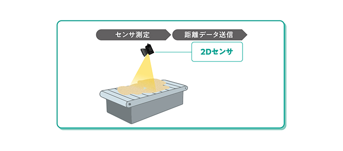 この高さデータをもとに、ハカルプラス様のシステムが搬送物の断面積を計算します。