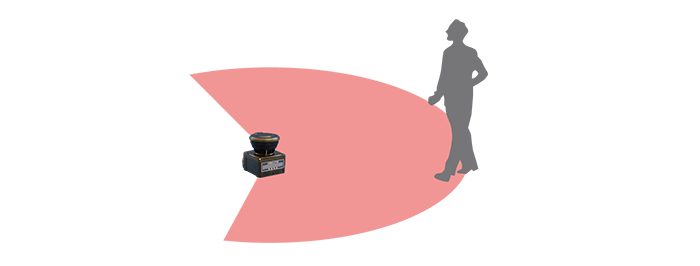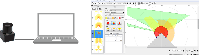 ・レーザースキャナ(LiDAR)を用いて周囲をスキャンし、指定したエリア内の物体を検知するセンサ