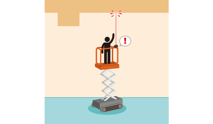 作業効率を大きく向上させられる一方で、天井などの構造物に作業員が挟まれてしまう危険が常に伴います。