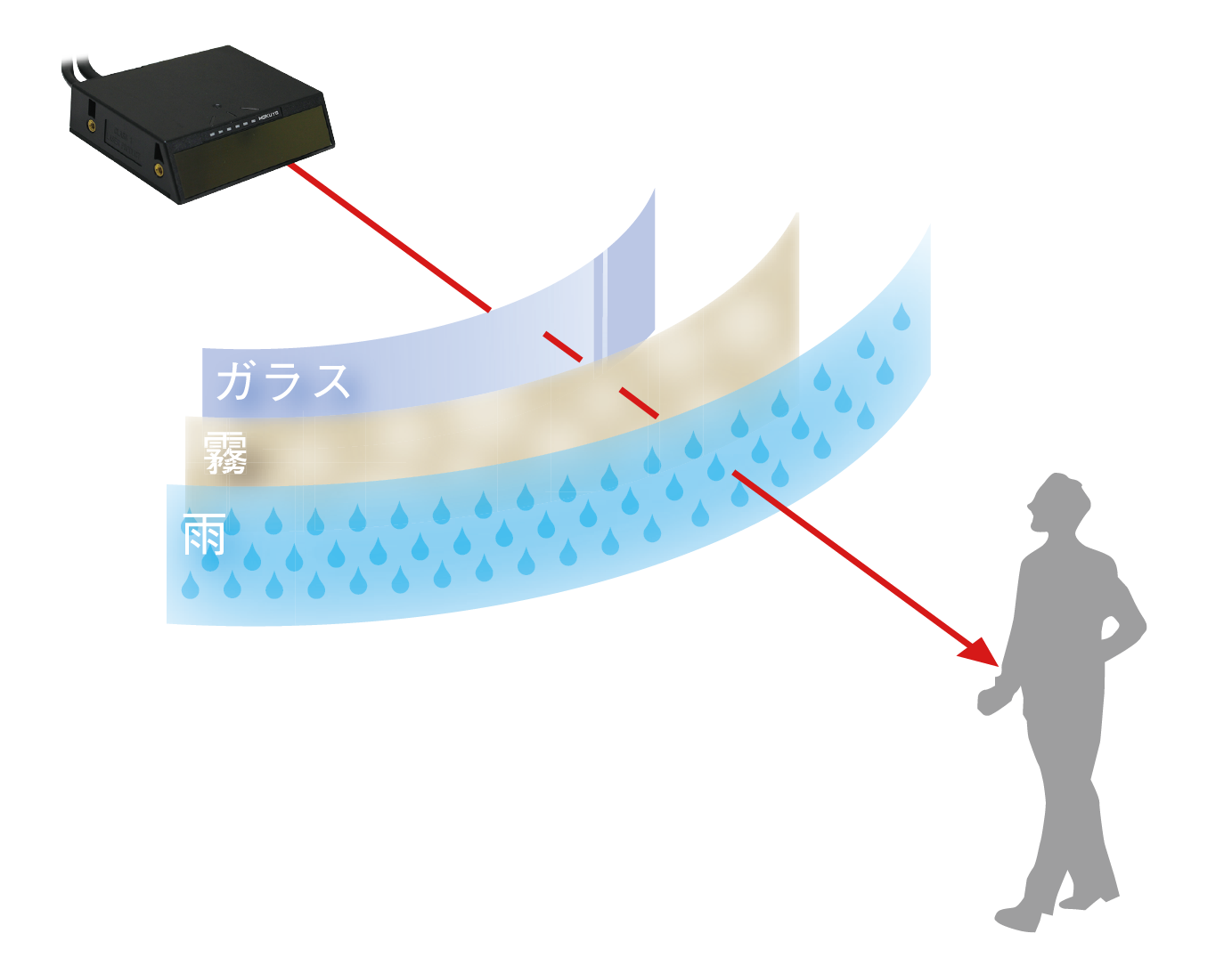 1方向への計測距離に対して雨や霧などの