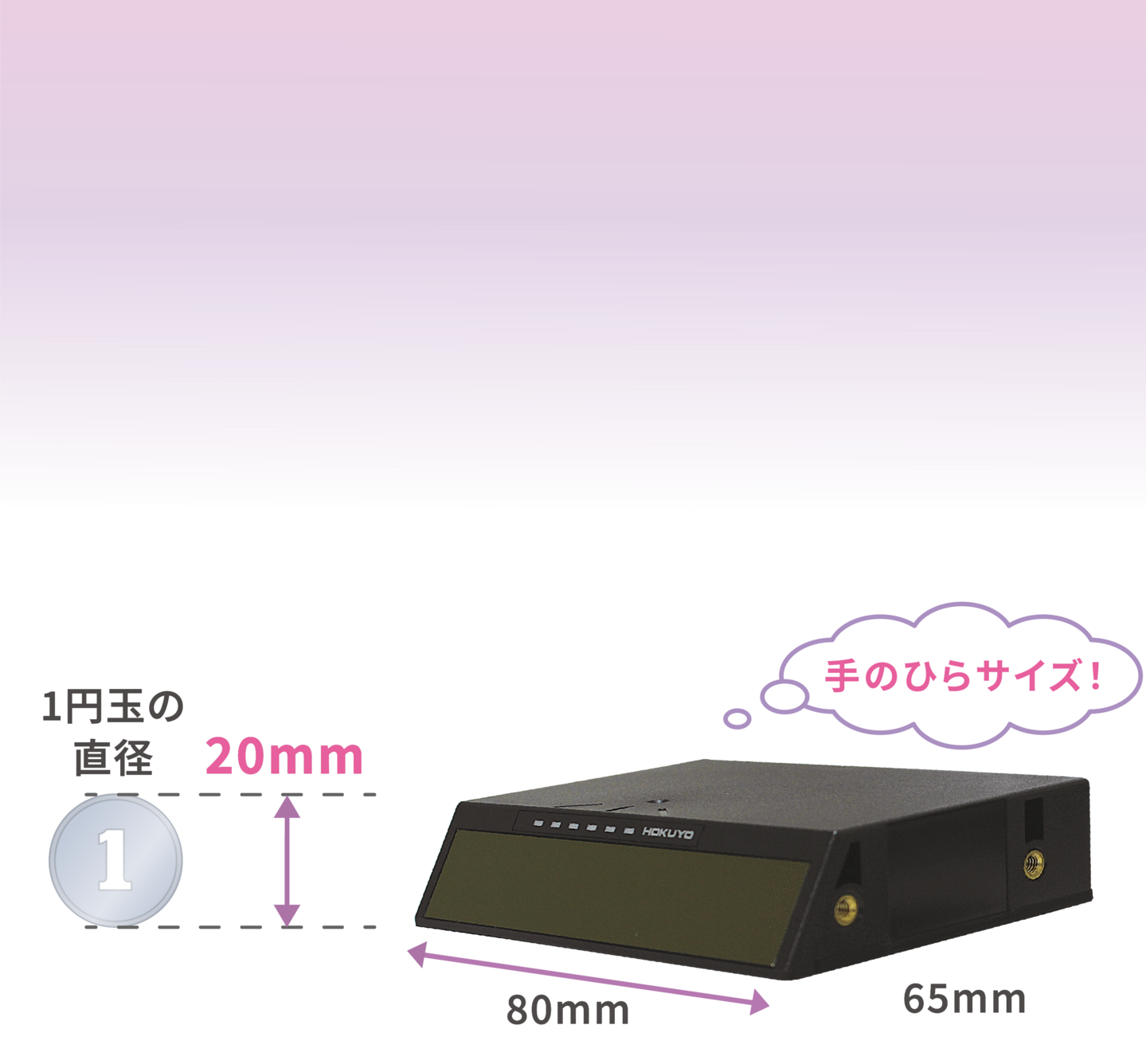 サイズ80mm×65mm×20mmのコンパクトサイズ。